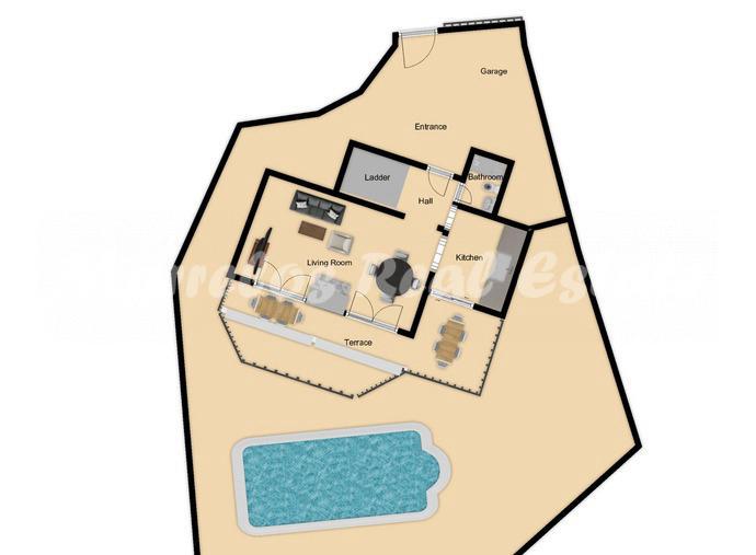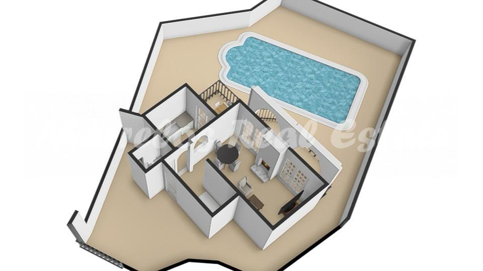 Villa independiente en el Mirador de las Lomas (Frigiliana). Consta de dos plantas, la planta alta está al ras de la calle y es el acceso principal a la vivienda, con zona de aparcamiento para un coche grande y espacio para varias motos. En esta misma planta encontramos el hall de entrada y un baño completo con plato de ducha, cocina amueblada con todos los electrodomésticos nuevos y acceso directo a la terraza, salón comedor con chimenea desde el cuál se accede también directamente a la amplia terraza con vistas al mar.