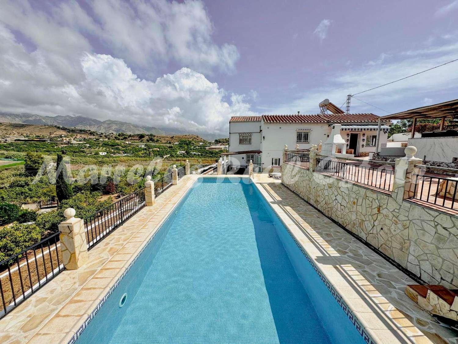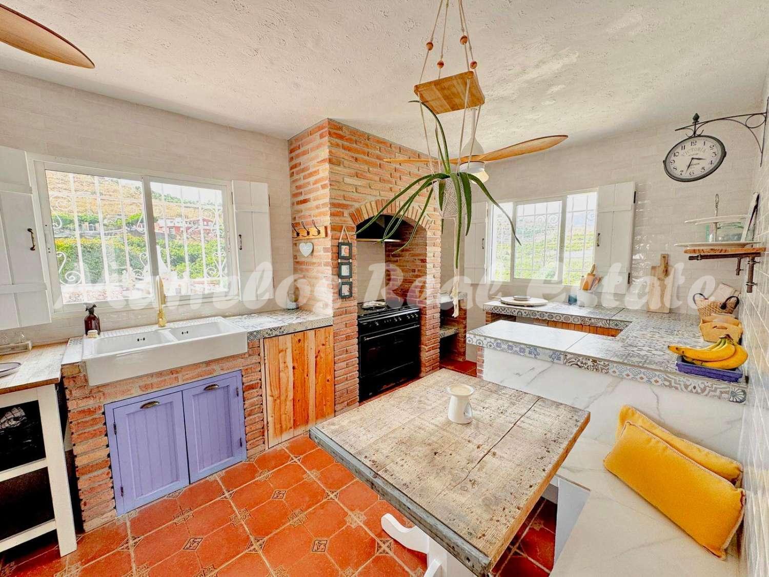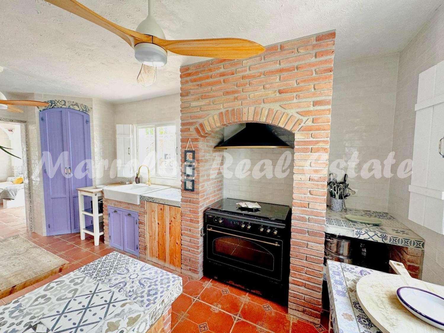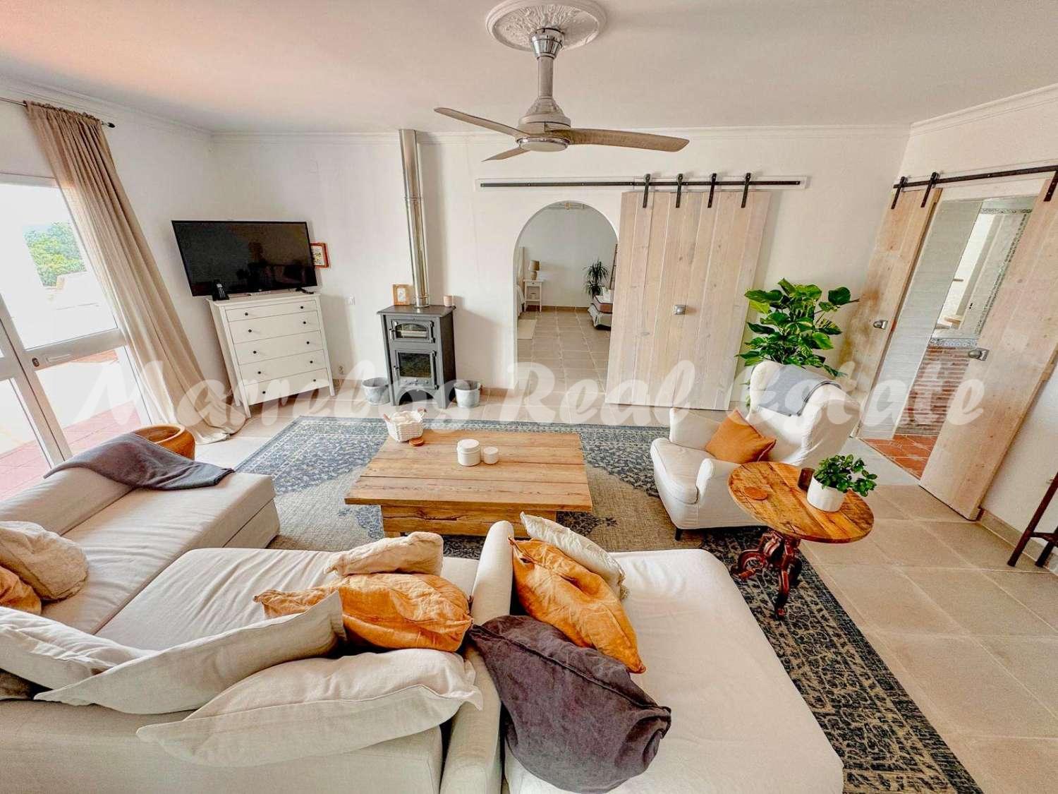 Esta villa única, ubicada en una zona muy codiciada de Nerja, ofrece una ubicación perfecta, en la tranquilidad del campo con preciosas vistas al mar, y al mismo tiempo cerca de Nerja.