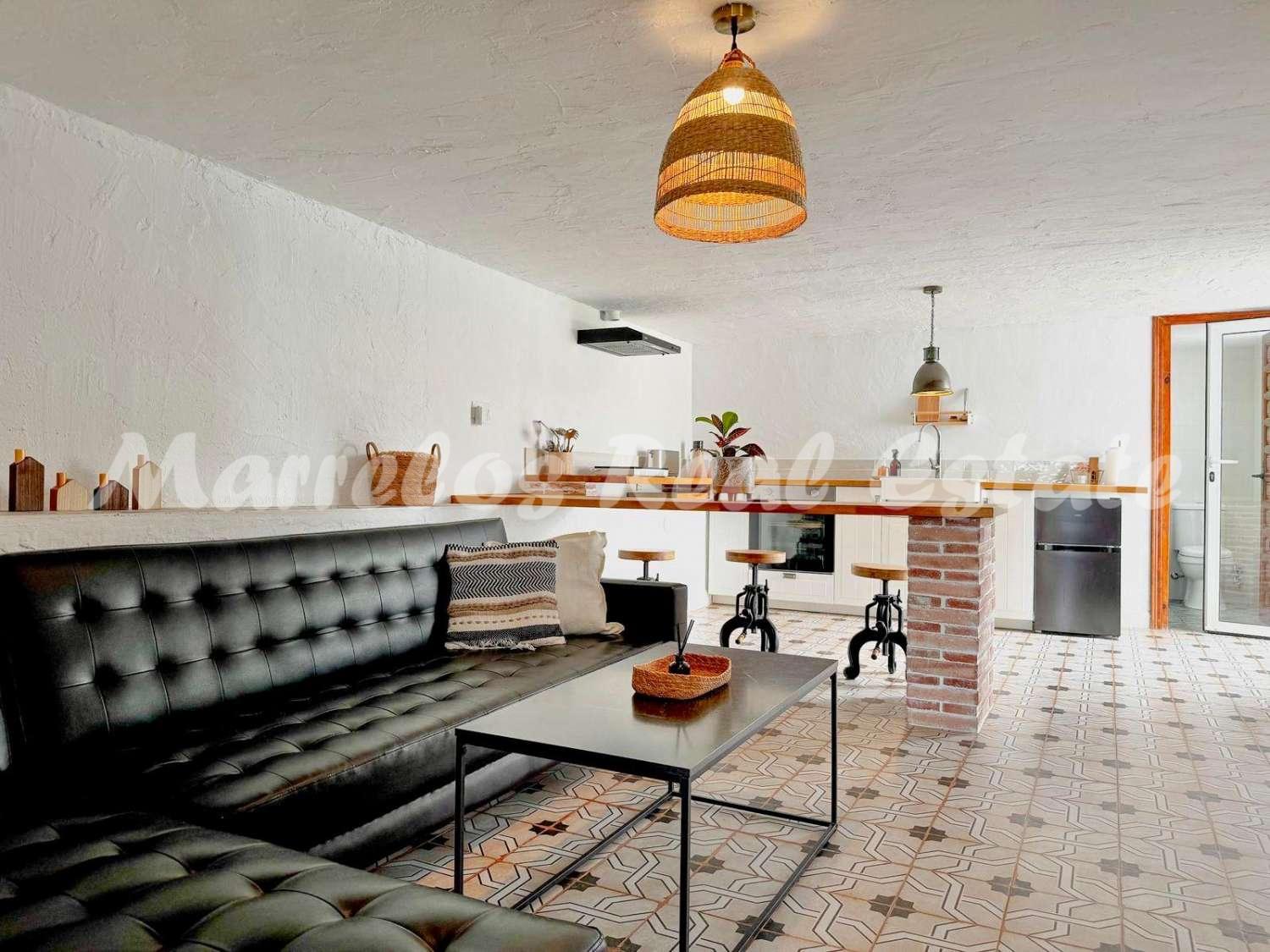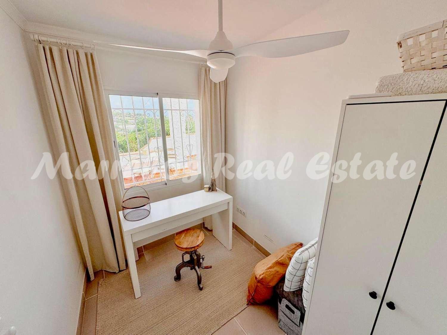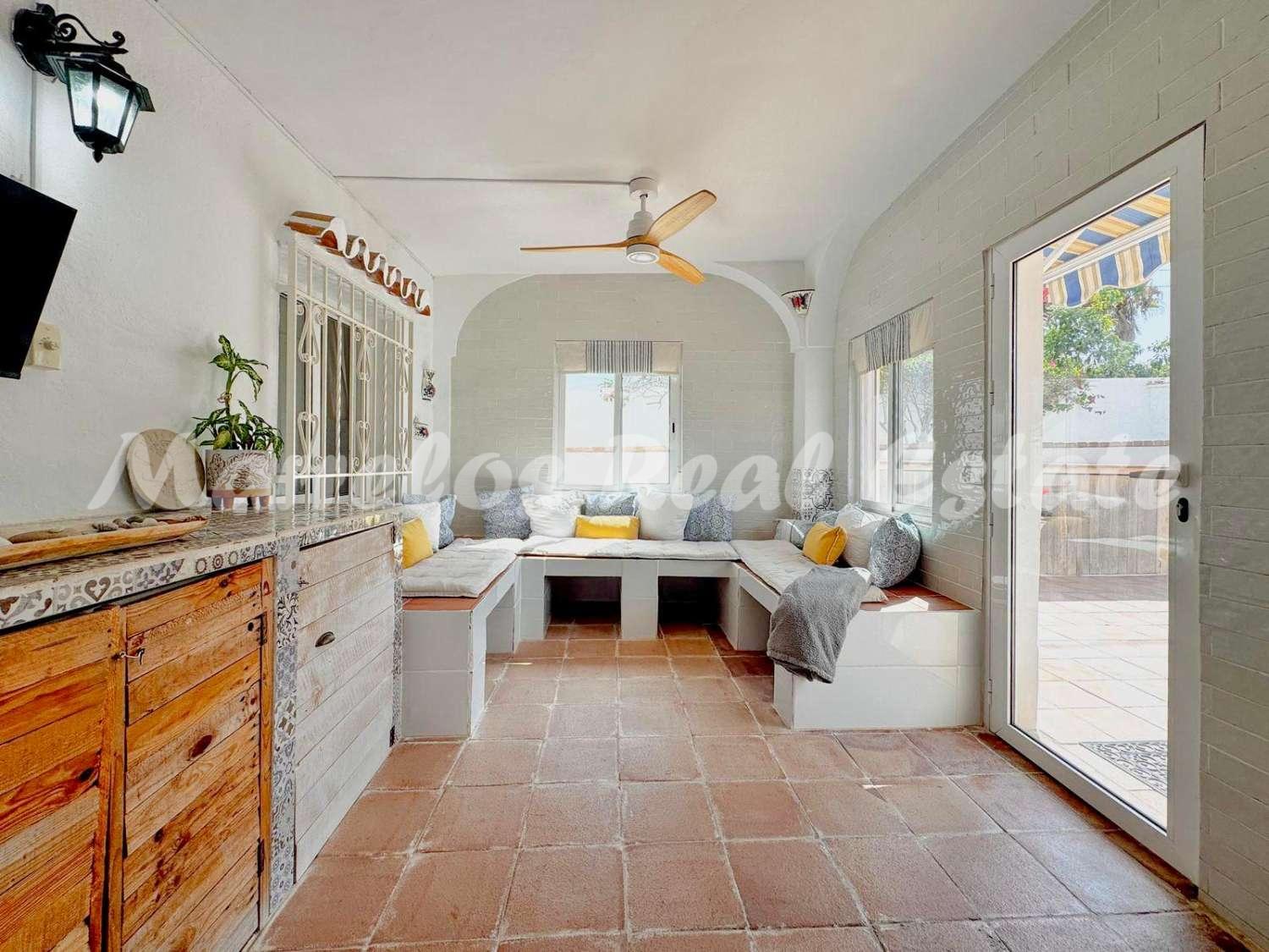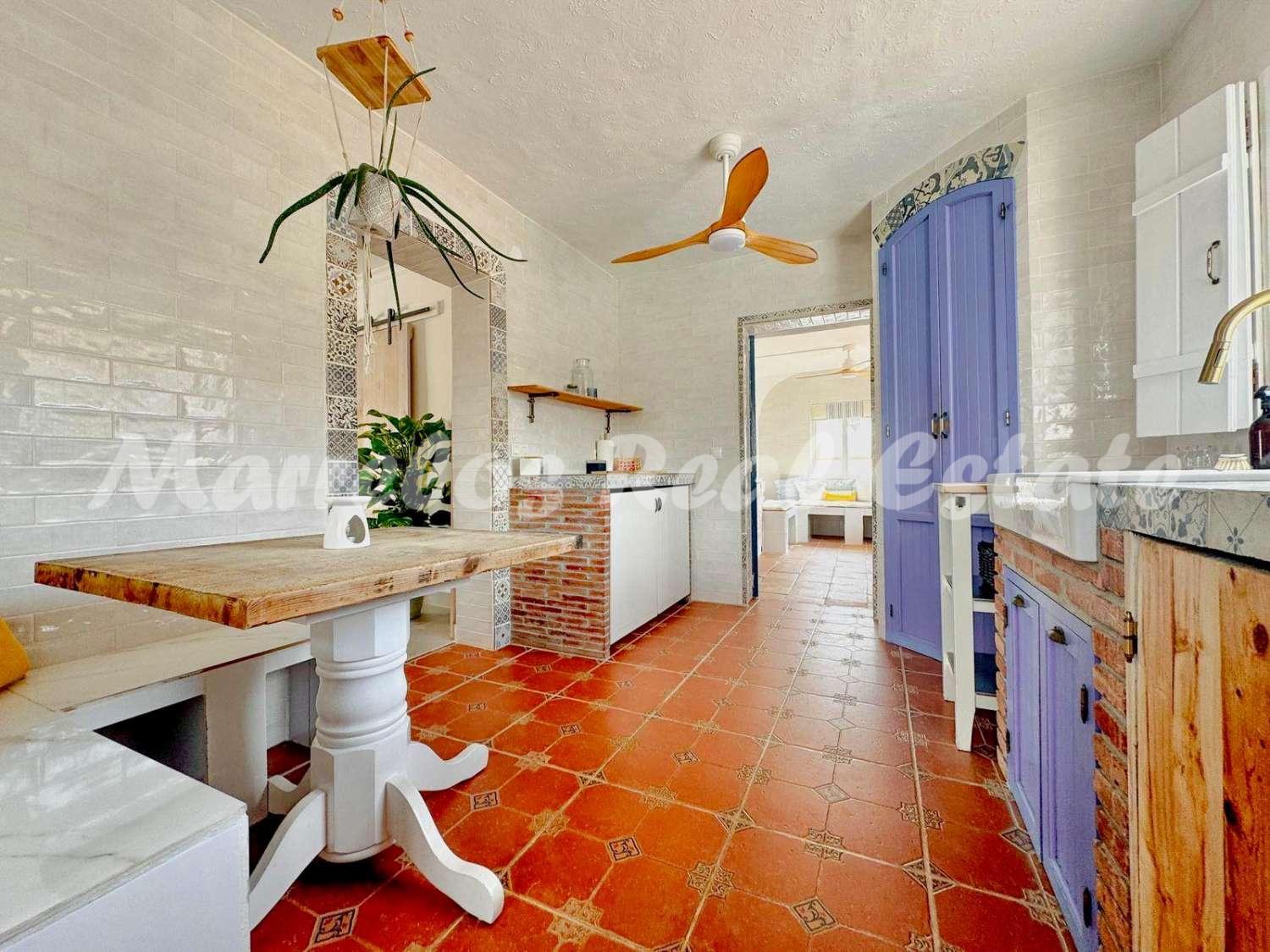 Esta villa única, ubicada en una zona muy codiciada de Nerja, ofrece una ubicación perfecta, en la tranquilidad del campo con preciosas vistas al mar, y al mismo tiempo cerca de Nerja.